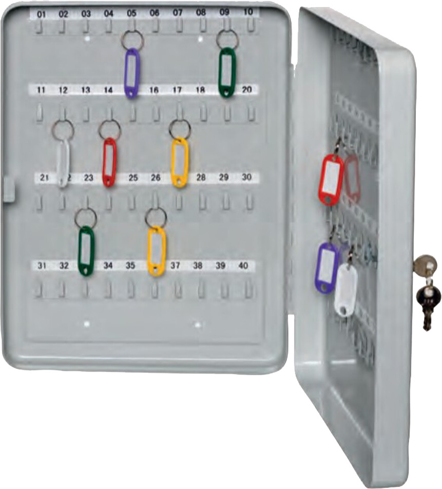 officio Schlüsselkasten, 30 Haken, 160 x 200 x 80 mm, Stahl, lichtgrau, 891