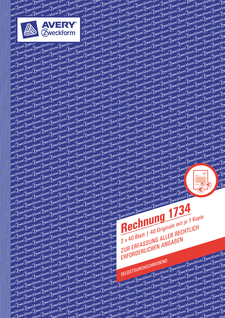 Avery Zweckform Formularbuch Rechnung DIN A4, selbstdurchschreibend, 2 x 40 Blatt, 1734