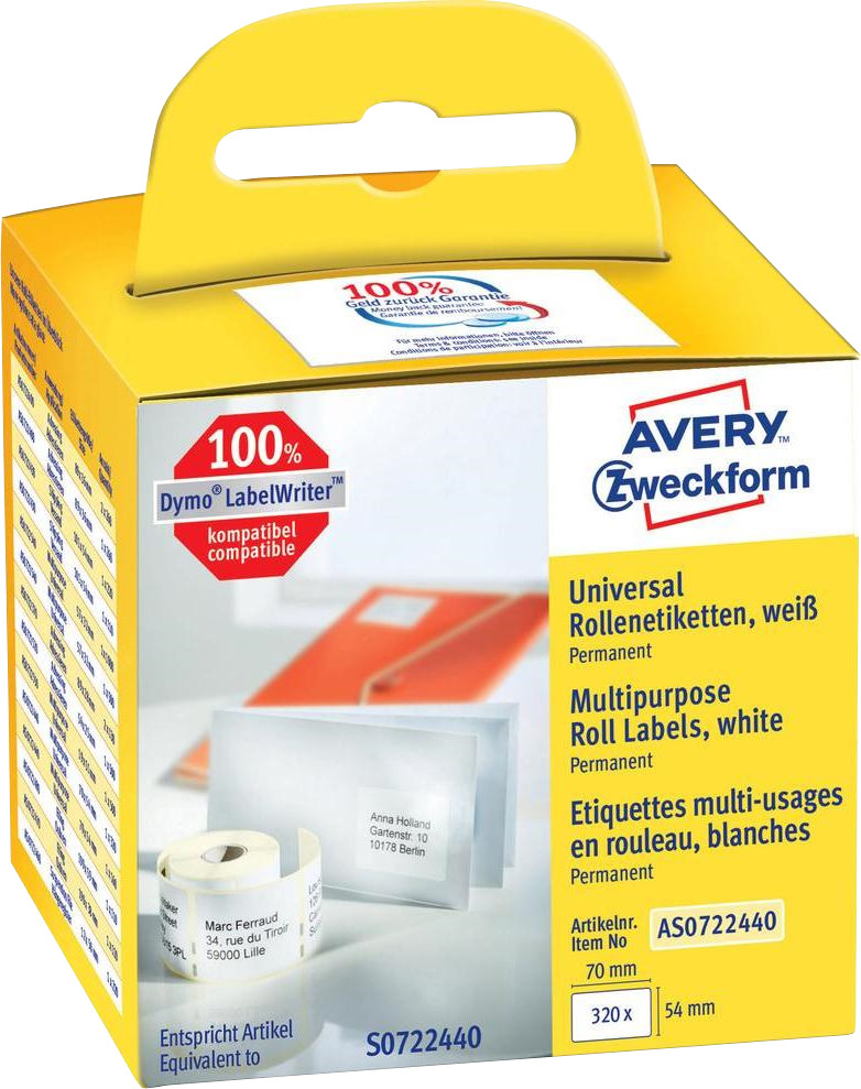 Avery Zweckform Rollenetiketten Universal, permanent, 70 x 54 mm, weiß, 320 Stück, AS0722440
