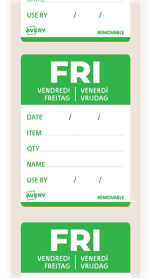 Avery Zweckform Tages-Etiketten "Freitag", HACCP-konform, ablösbar, 40 x 56 mm, 500 Stück, DLDFRIREV-500
