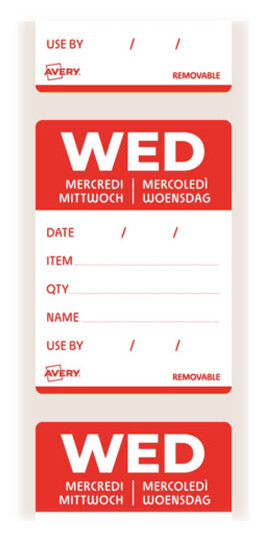 Avery Zweckform Tages-Etiketten "Mittwoch", HACCP-konform, ablösbar, 40 x 56 mm, 500 Stück, DLDWEDREV-500