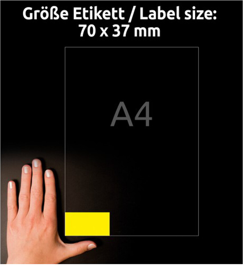 Avery Zweckform Folien Etiketten, wetterfest, 70.0 x 37.0 mm, gelb, 480 Stück, L6131-20