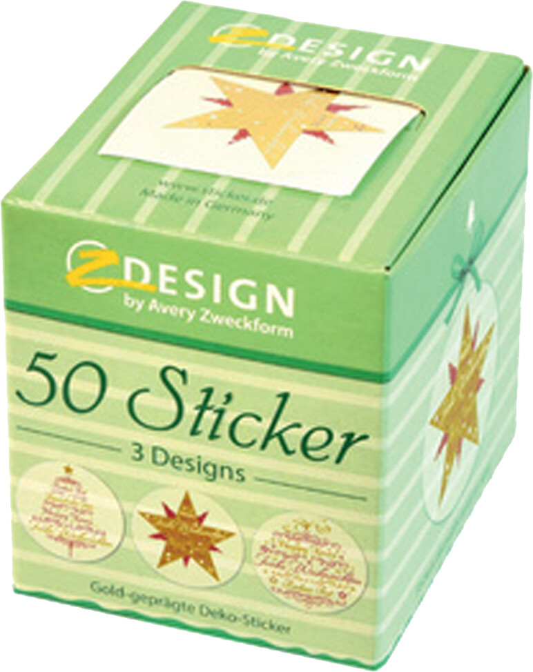 Avery Zweckform Weihnachts-Sticker auf Rolle, 3 Designs, 38mm, 50 Sticker in Spenderbox, 56825
