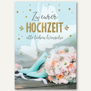 CACTUS Hochzeitskarte "Schuhe und Blumenstrauß", 120 x 170 mm, Umschlag elfenbein, 9072-16937