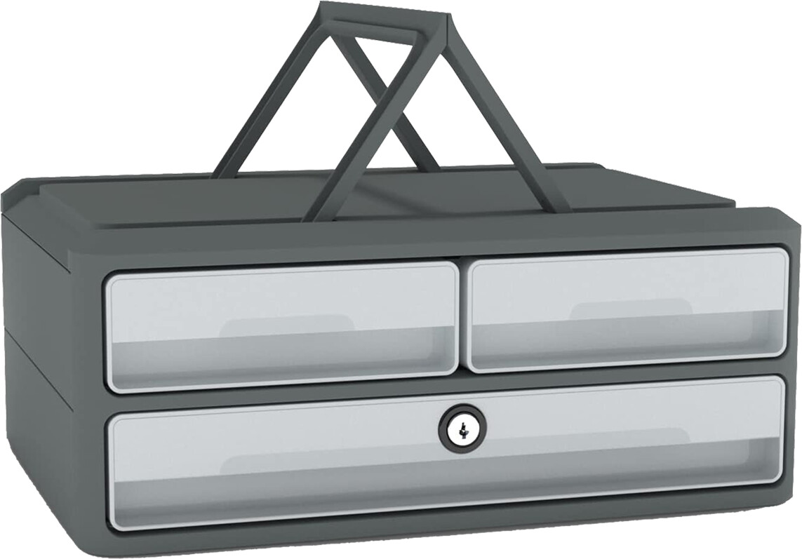 CEP Schubladenbox "MoovUp", DIN A4 + A5 quer, 3 Schubladen, Tragegriff, Schloss, PS, grau, 1091216361