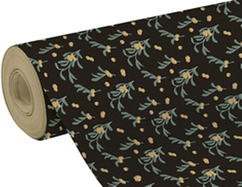 Clairefontaine Weihnachts-Geschenkpapier "Mistelzweig", schwarz / grün, 350 mm x 50 m, 70 g/m², 223919C