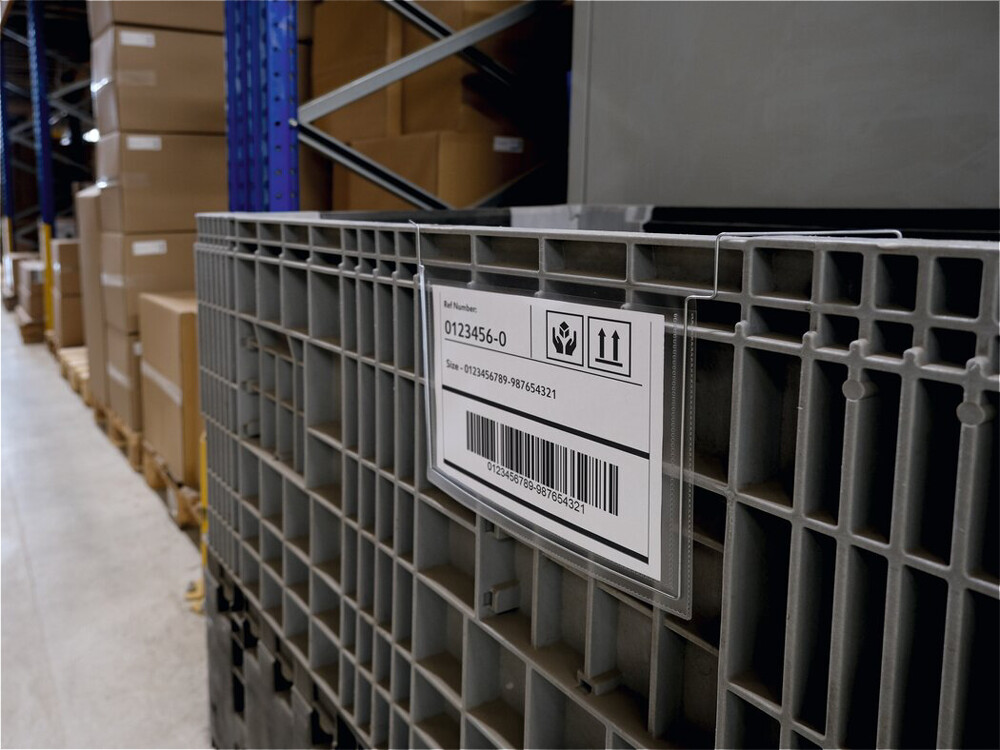 Kennzeichnungstasche mit verzinktem, flexiblen Draht zur leichten und sicheren Fixierung! Für den Einsatz an Transportbehältern, Gitterboxen, Holzaufsatzrahmen und Palettenkartons!