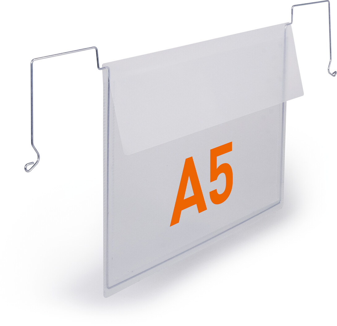 Durable Drahtbügeltasche mit Klappe A5 quer PP, 50 Stück, transparent, 118719