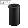 • runder Papierkorb mit Flammenlöschkopf für präventiven Feuerschutz - der selbstlöschende Deckel unterbricht die Sauerstoffzufuhr im Papierkorb und erstickt die Flammen rechtzeitig