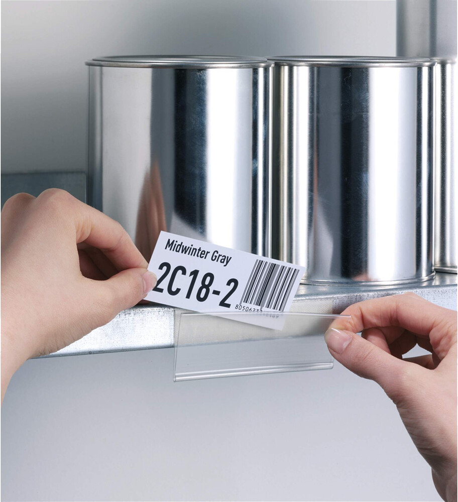 - Regalschilder inkl. manuell beschreibbarer Papierstreifen