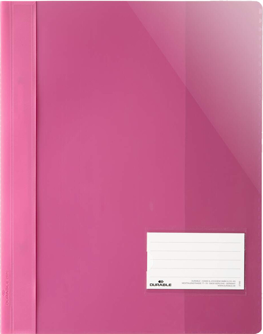 Durable Sichthefter DIN A4+, Beschriftungsfenster, PVC, dunkelrosa, 25 Stück, 269034