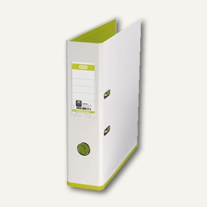 Einband innen und außen in einzigartiger Bicolour-Optik mit PP-Folie kaschiert. Langlebiger und möbelschonender Kantenschutz. Komplett schmutz- und feuchtigkeitsabweisend. Sichttasche am Rücken. Formstabile Spezialpappe. ELBA Standard-Hebelmechanik. Niederhalter, Griffloch und rado-Ösen.