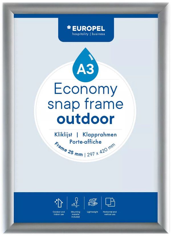 EUROPEL Plakatrahmen "Economy Outdoor", DIN A3, hoch/quer, silber, 355130