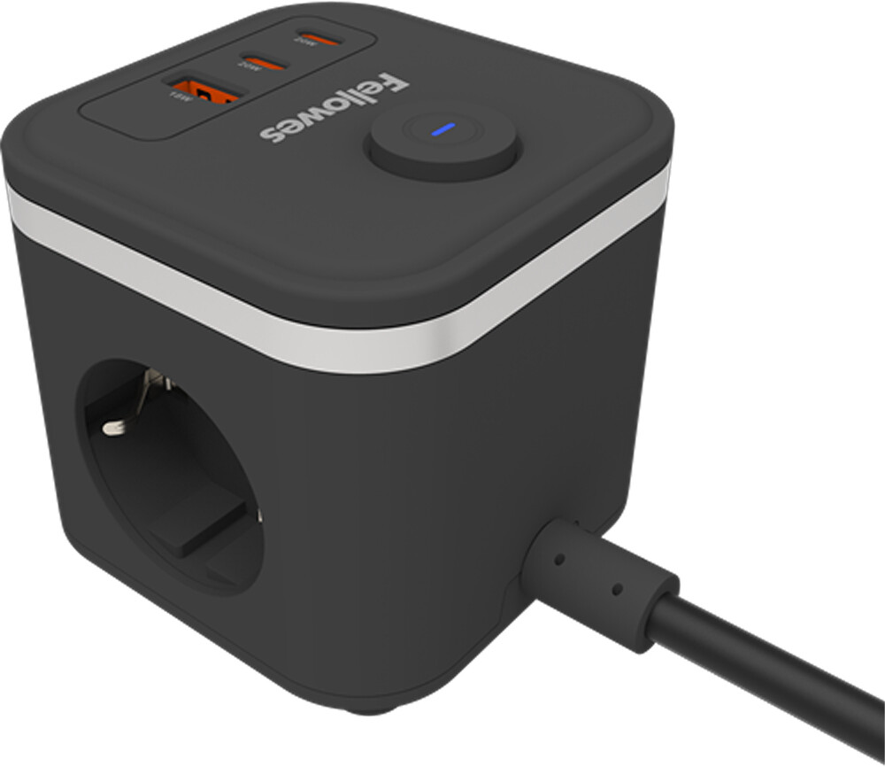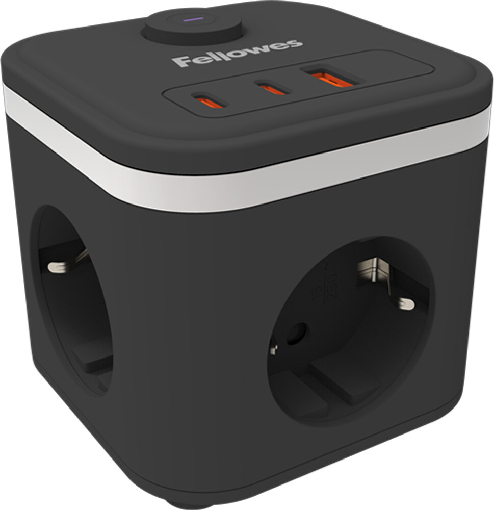 Fellowes Steckdosenwürfel Power Cube, 3x Steckdose / 1x USB-A / 2x USB-C, Schalter, schw., 100137167