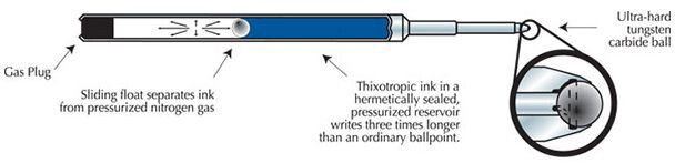 Eines der wohl bekanntesten Schreibgeräte des zwanzigsten Jahrhunderts ist der Fisher Bullet Pen. 1948 begann Paul C. Fisher in den USA mit der Fertigung dieses ersten Taschenkugelschreibers. Speziell für die Weltraumflüge der NASA entwickelte Fisher dann ab 1968 eine hermetisch abgeschlossene Gasdruckmine, die das Eintrocknen der Tinte verhindert (und, so der Hersteller, auch noch nach 100 Jahren schreibfähig ist) – sowohl Astro- als auch Kosmonauten nutzten Fisher-Kugelschreiber. Die patentierte Mine schreibt nicht nur im Weltraum, sondern auch unter Wasser, über Kopf, auf fettigem Untergrund, bei -34° C und (natürlich nur theoretisch interessant) +143° C. Noch heute werden die Minen handgetestet und auch in den klassischen Fischer Bullet Pen eingebaut. Der Gasdruck (3,5 bar) in der Mine drückt die Schreibpaste ständig gegen die Schreibkugel. Dadurch wird ein kontinuierlicher Schreibfluß bis zum letzten Tropfen sichergestellt. Passend für den meisten Fisher Space Pen Kugelschreiber.