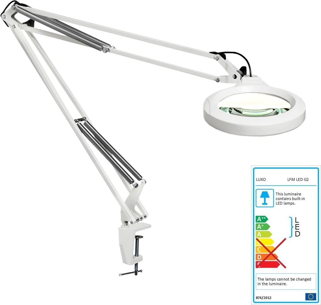 Glamox / Luxo LED-Lupenleuchte LFM LED G2 - 5 Dioptrien, Kaltlicht, 10 W, Tischklemme, weiß, LFG028195