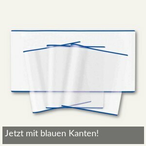 Rundum durchsichtige Fertigeinbände aus kräftiger Polypropylen-Folie mit stabilem, geschweißten Kantenschutz. Mit zweiter Lasche für perfekten Halt.