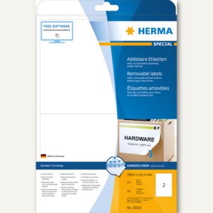 Herma Haftetiketten, 199.6 x 143.5 mm, ablösbar, weiß, 50 St., 10020