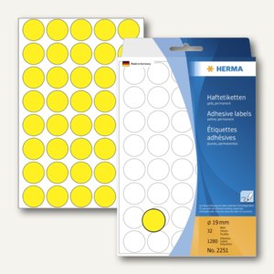 Herma Vielzweck-Etiketten, ø 19 mm, gelb, 5 x 1.280 Stück, 2251