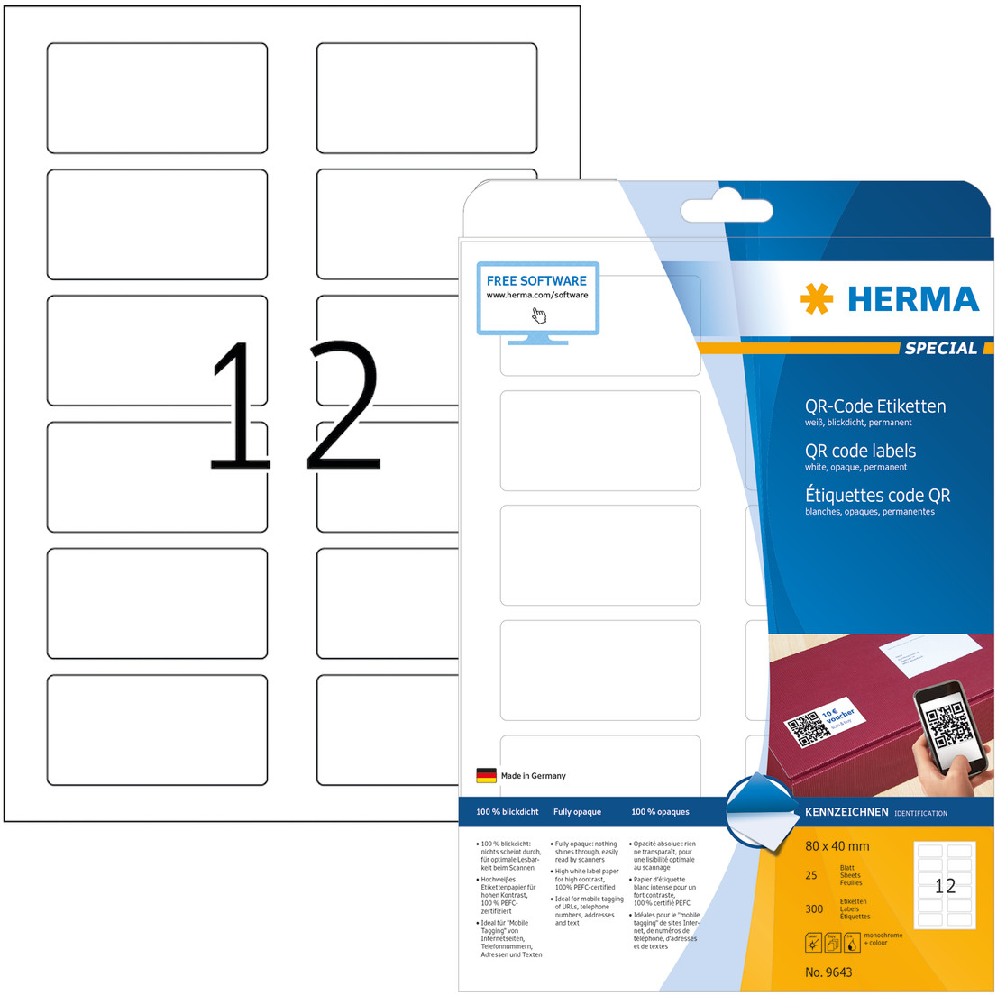 Herma QR-Code Etiketten, 80 x 40 mm, rechteckig, weiß, 300 Stück, 9643