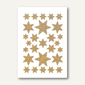 Herma Sticker DECOR Sterne, 6-zackig, 5 Größen, Irisfolie, gold, 10 x 1 Blatt, 3916