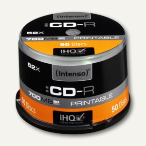 Intenso CD-R Rohlinge, 700 MB, 52x Speed, bedruckbar, 50er-Spindel, 1801125