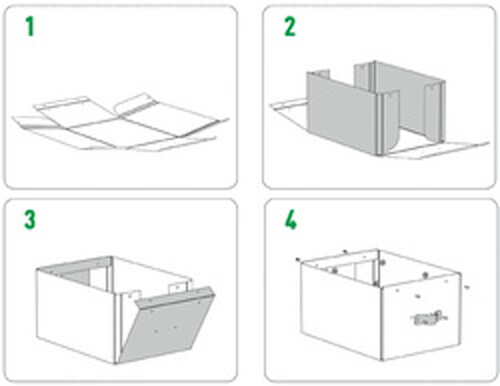 - kann zu 100 % recycelt werden, indem die Aufbewahrungsboxen einfach in einzelne Teile zerlegt werden