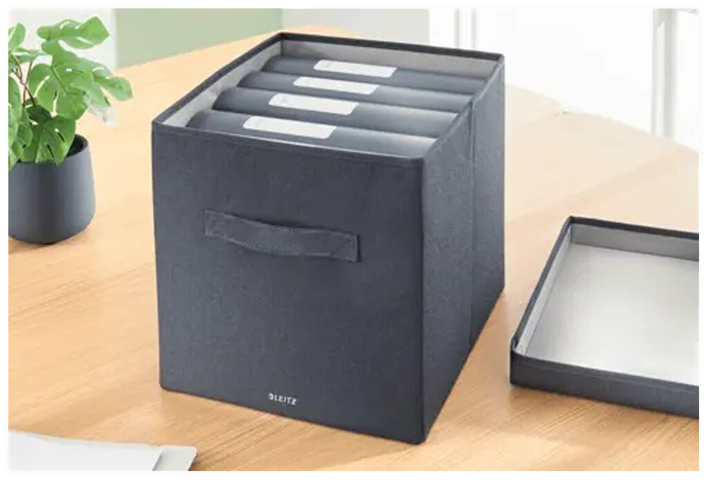 LEITZ Aufbewahrungsbox "L" mit Deckel, Stoff samtgrau, 330 x 380 x 325 mm, 2 Stück, 6145-00-89