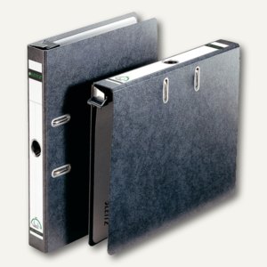 180° Hängeordner mit aus- und einklappbarem Hängeschwenkbügel aus Kunststoff. Dank des 180° umlegbaren Hebels ist die Ablage auch auf der linken Seite möglich. Durch die um 50% weitere Öffnung können größere Papiermengen auf einmal eingefüllt werden. Mit Schlitzen, Griffloch und aufgeklebtem Rückenschild. Der Einband besteht aus Hartpappe.