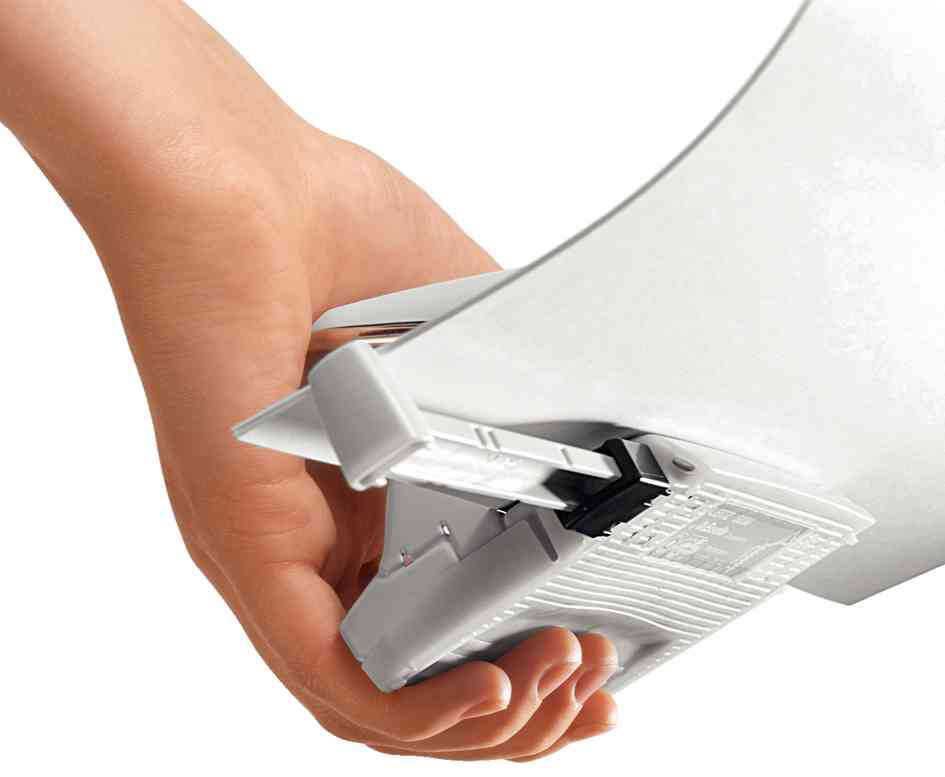 - Abfallkasten bleibt beim Entleeren am Locher und lässt sich dadurch leicht wieder schließen