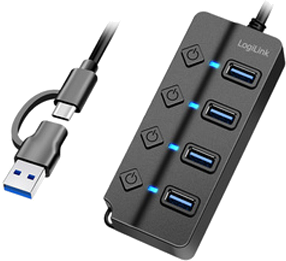 LogiLink USB 3.2 Gen1 Hub, 4 Port - mit Ein- / Ausschalter, UA0419