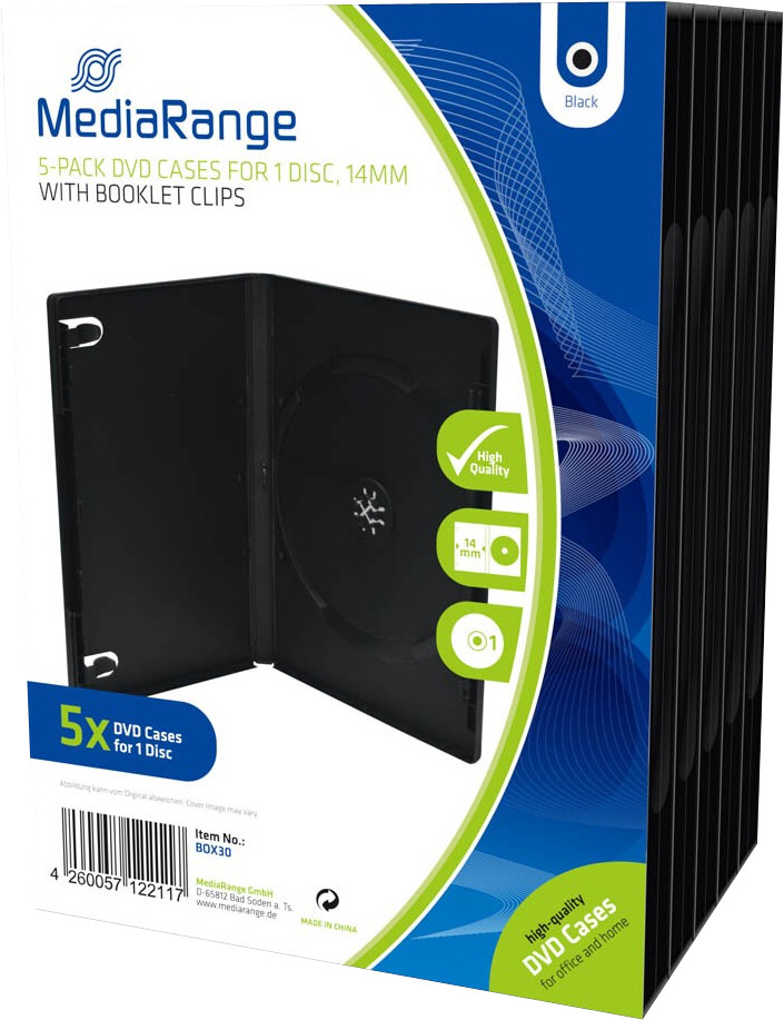 MediaRange DVD-Hülle - Leerbox für 1 CD/DVD, schwarz, 5 Stück, BOX30