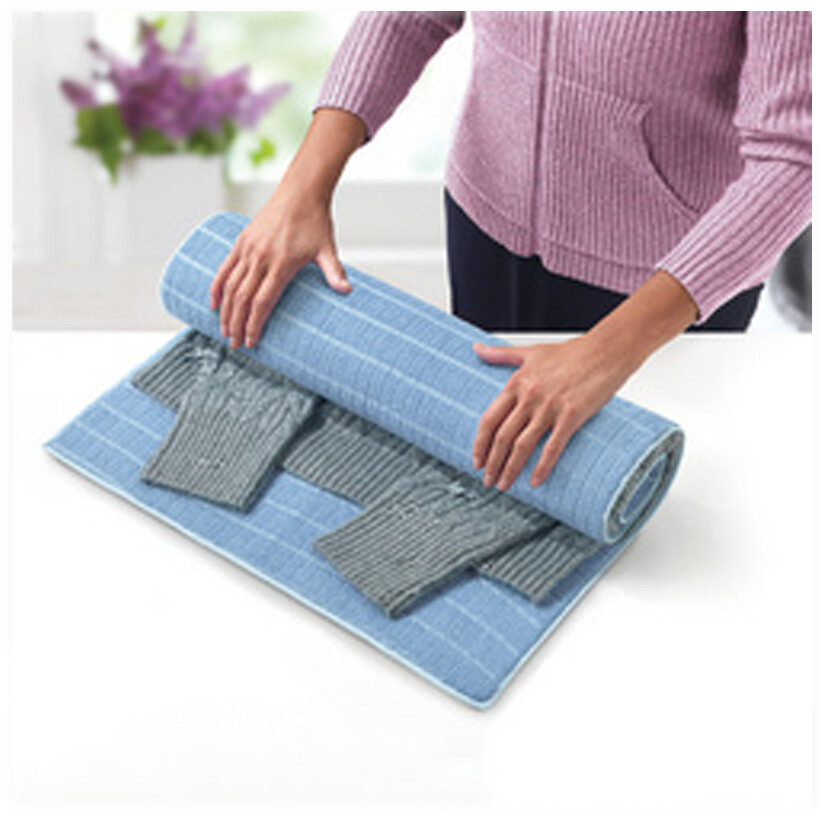- einfach auslegen, nasse Kleidung darauf legen, einrollen und anschließend aufrollen