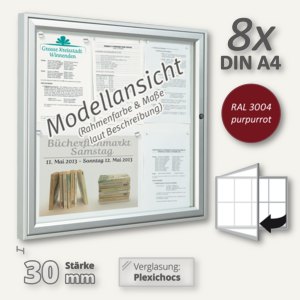 Außenschaukasten 98 x 83 x 3 cm, 8xA4, einflügelig, purpurrot, 405060-3004