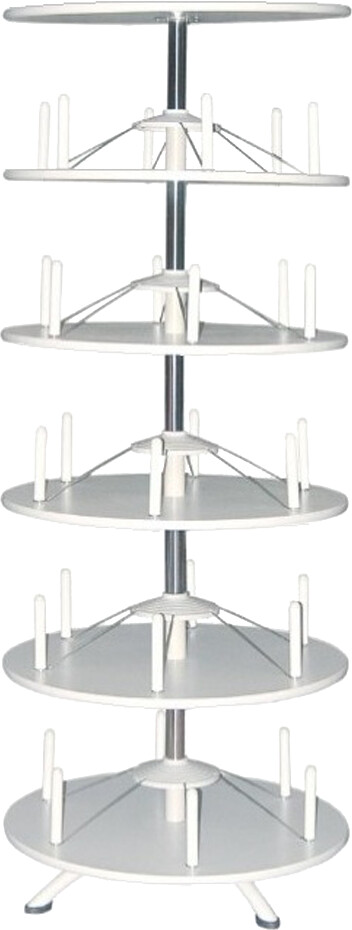 - Einzeln drehbare 18 mm-Fachböden, oberste Scheibe feststehend