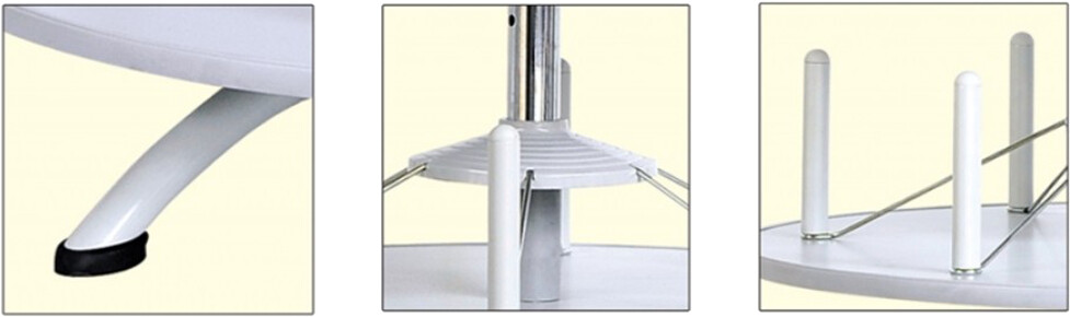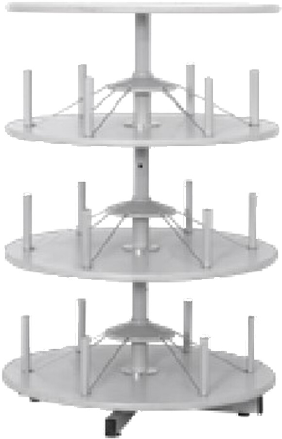 • Einzeln drehbare 18 mm-Fachböden, oberste Scheibe feststehend