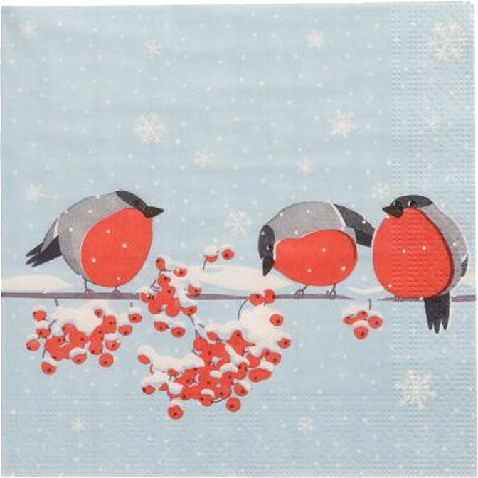 Papstar Servietten "Red Gorded Birds", 3-lagig, 1/4-Falz, 33 x 33 cm, 300 St., 89506