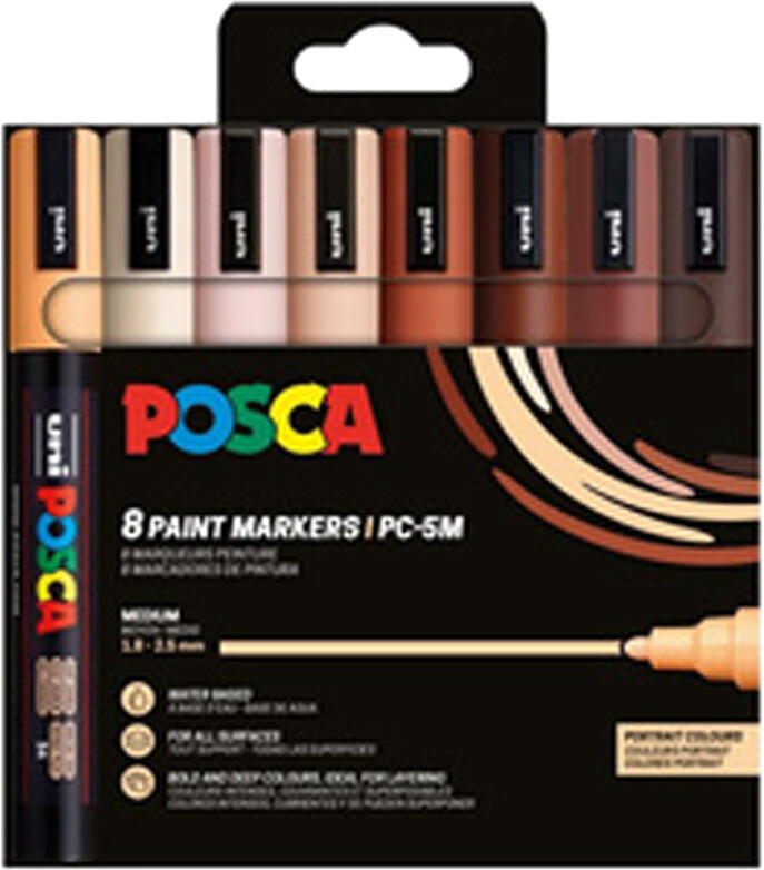 POSCA Pigmentmarker PC-5M, Rundspitze 1.8-2.5 mm, sortiert, 8er-Etui (Porträtfarben), PC5M/8APF ASS77