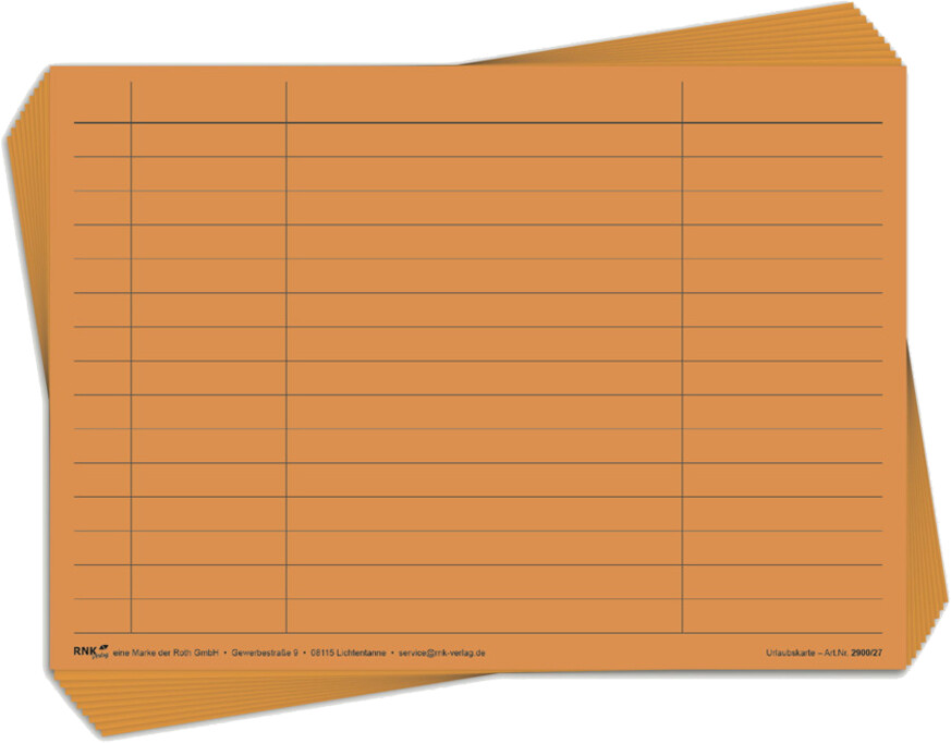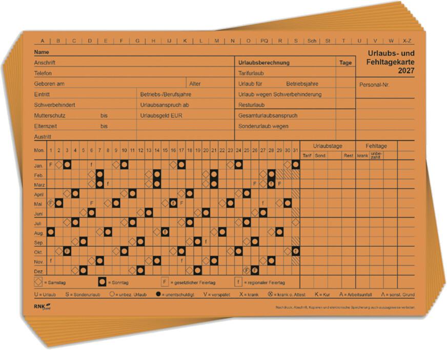 RNK Urlaubs- und Fehltagekarte 2027, A5 quer, grafisch / Monatstage, 10 St. ***2027***, 2900/27-10