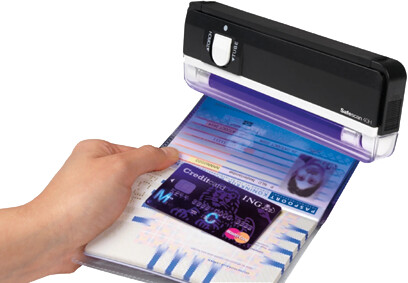 - Prüft Kreditkarten, Pässe und andere Ausweise auf Echtheit