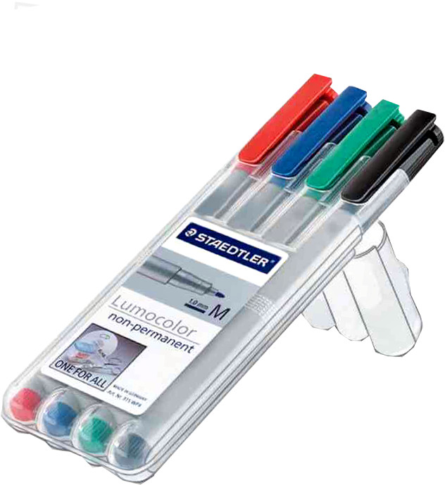STAEDTLER Lumocolor Universalstifte non-permanent 312B, 1,0 - 2,5 mm Keilspitze, 4er-Etui, 312 WP4