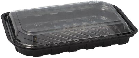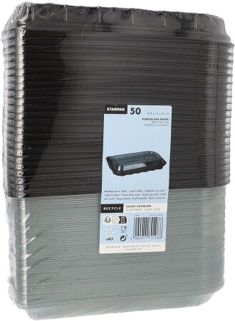 STARPAK Sushi-Schalen, rechteckig, 21 x 13 x 4.3 cm, Deckel, R-PET, schwarz, 700 Stück, 37252