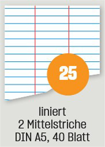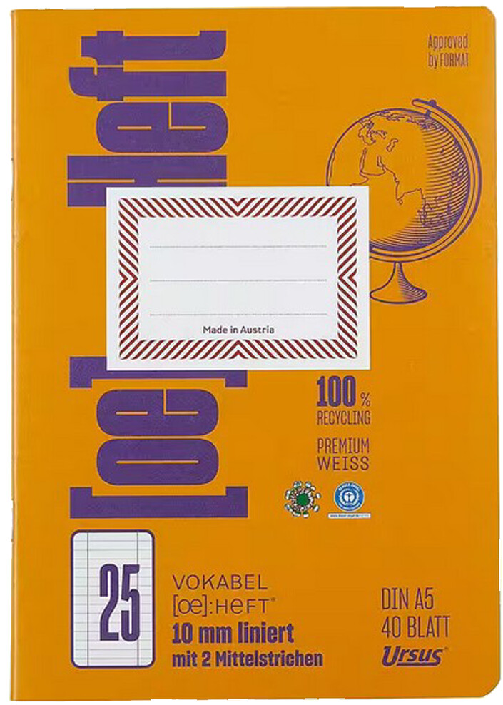 Ursus Vokabelheft, Lineatur 25 liniert, DIN A5 ohne Rand, 3-spaltig, 40 Blatt, 070540 12
