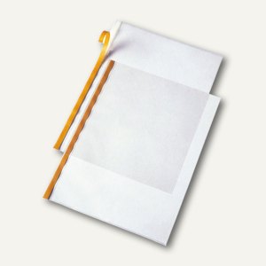 Mit selbstklebendem Heftrand, oben offen und dokumentenecht.