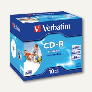 Verbatim CD-R Rohlinge AZO, 700 MB, 52x Speed, bedruckbar, Jewel Case, 10 Stück, 43325