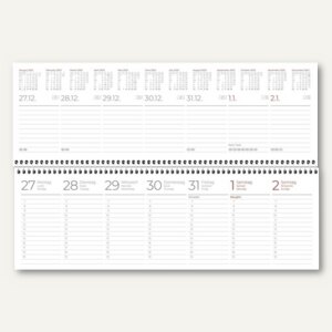 | Kalenderaufteilung/Layout | 1 Woche auf 2 Seiten |