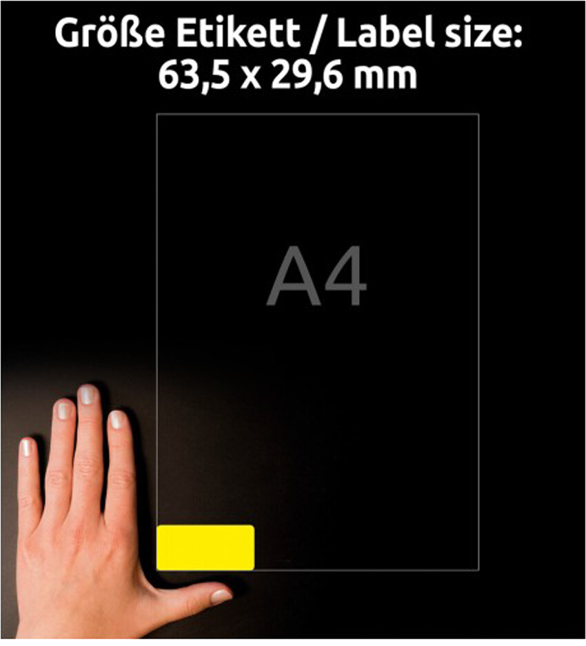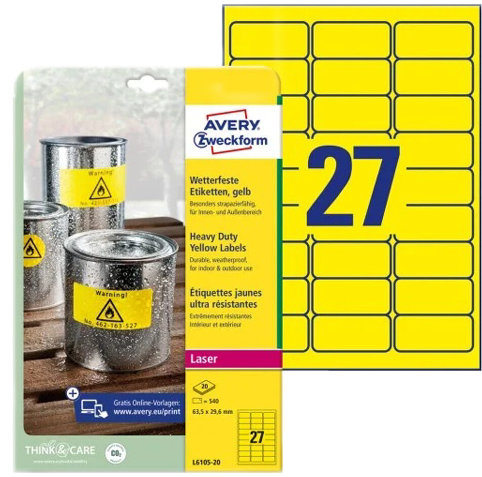 Avery Zweckform Folien Etiketten, wetterfest, 63.5 x 29.6 mm, gelb, 540 Stück, L6105-20