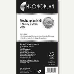 Chronoplan Zeitplaner Wochenplan Midi, DIN A6, 1 Woche/2 Seiten, Zeilen, 50255